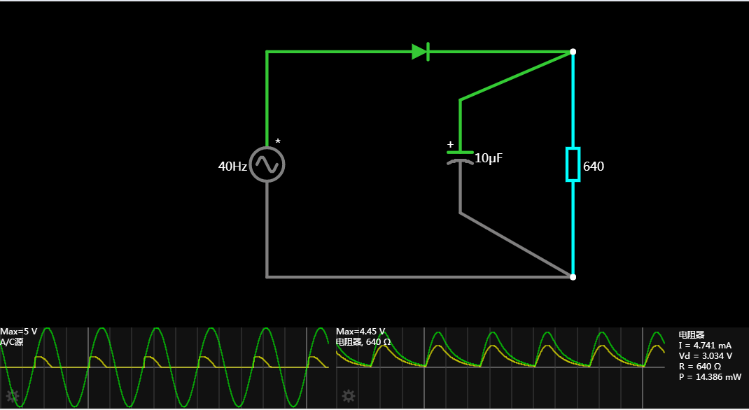 半波整流與全波整流后加電容的效果解析首先是半波整流,在整流后加電容試試。可以發現并沒有達到預想的目的。是不是電容的容量不夠大。那么